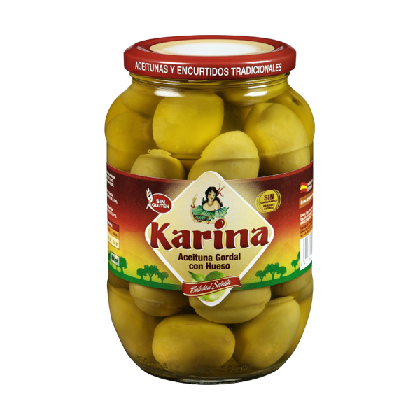 Trái olive nữ hoàng xanh nguyên hạt hiệu Karina 870g